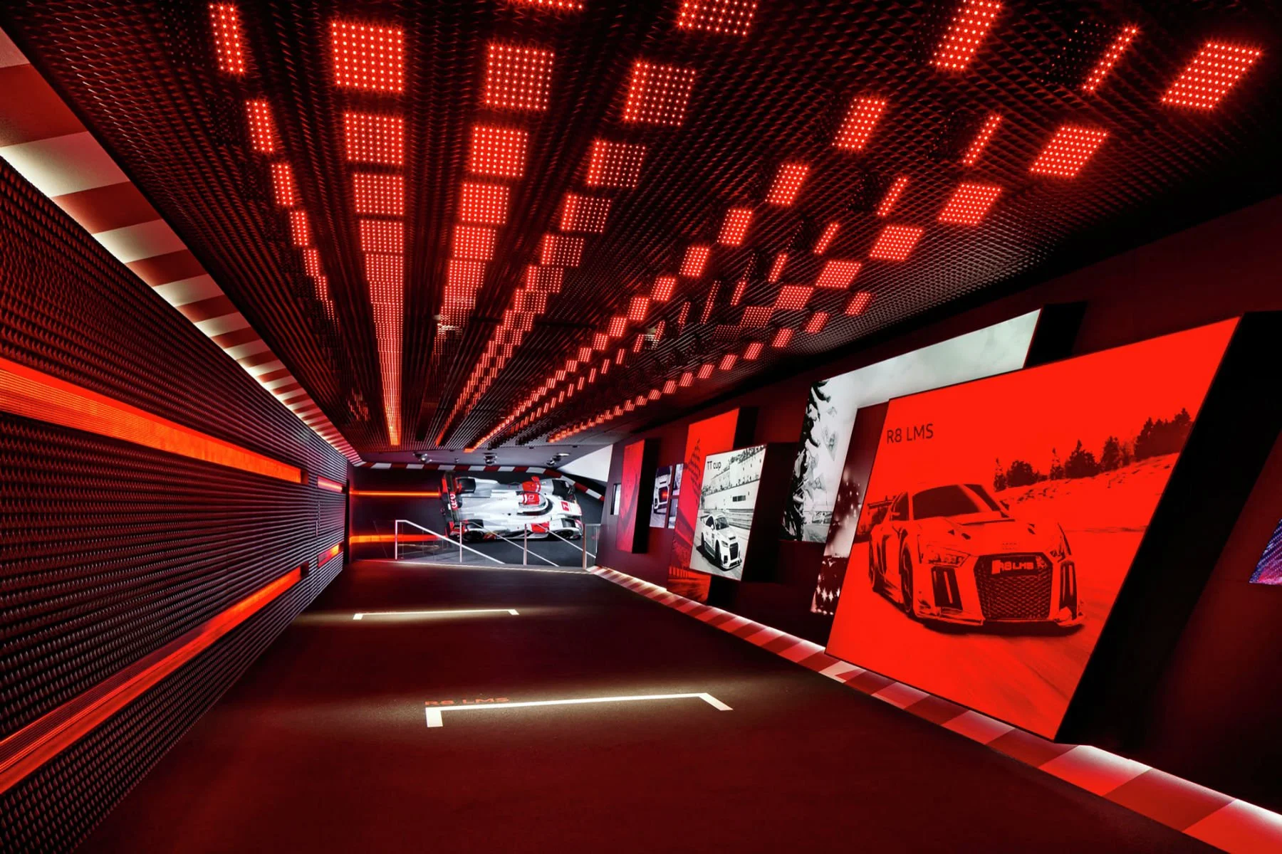 At the 2015 IAA International auto show in Frankfurt, Germany, Audi constructed bold exhibition architecture showcasing the four key elements of the brand “The Power of Four” - Audi ultra, Audi Technologies, Audi quattro, and Audi Sport. Zoar was asked to direct and create all the media-architecture throughout the exhibition. Telling a story about the four key themes of the Audi brand, and linking the virtual and physical world by synchronizing the movement of the vehicles and the digital film content. The main hall featured four flagship Audi vehicles each mounted to their own 12,000 pixel resolution LED wall. We created the films for each LED screen and orchestrated the movement of all four vehicles to rotate 360 degrees in any direction while interacting with their respective film. In addition to the main hall Zoar created the ultra film at the main entrance, a 3D stereoscopic hologram in the Technologies tunnel, a sound weather environment for the quattro ice room, and a 320 ft sport tunnel lined with LED panels that lead to the main hall.